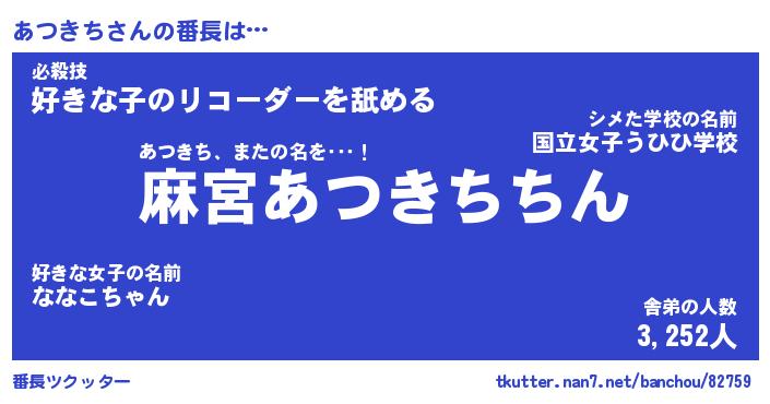 | 意味不明あだ名 | 『ペロリンあつきち』『永久保存あつきち』 |