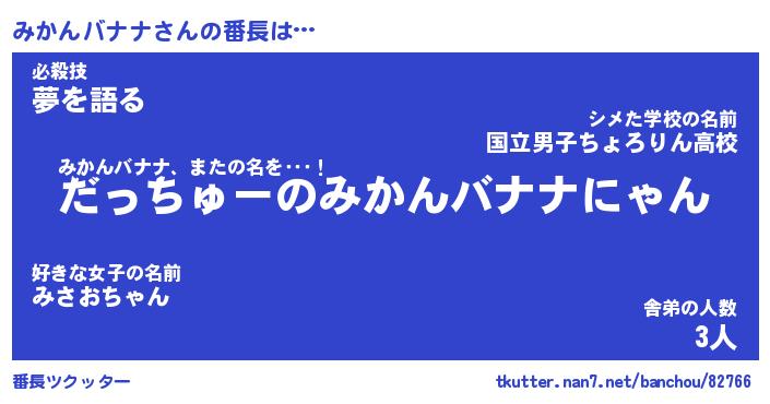 | ヒーロー風カッコイイあだ名 | 『スーパーミカンバナナ』『魔戒騎士ミカ』 |