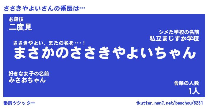 | ヒーロー風カッコイイあだ名 | 『スーパーササキヤヨイ』『黄金騎士ササ』 |