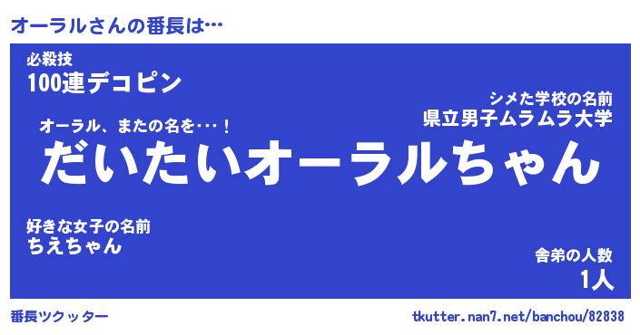 | 男性向けラノベタイトル風あだ名 | 『オーラルの憂鬱』 |