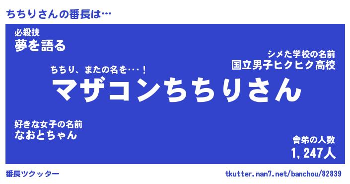 | ヒーロー風カッコイイあだ名 | 『スーパーチチリ』『ウルトラちちりマン』 |