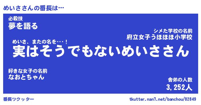 | 肩書あだ名 | 『めいさ御曹司』『めいさ総理大臣』 |