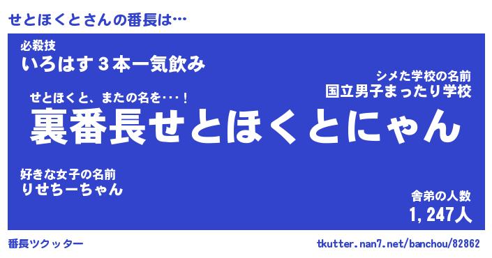 | 肩書あだ名 | 『せとほくとCEO』『せとほくと総理大臣』 |