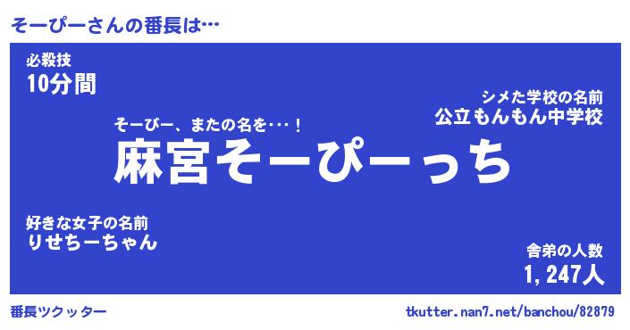 | 意味不明あだ名 | 『ペロリンそーぴー』『永久保存そーぴー』 |
