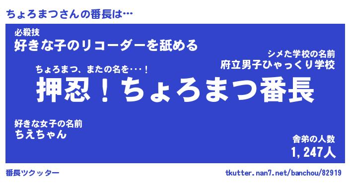 | ヒーロー風カッコイイあだ名 | 『スーパーチョロマツ』『銀牙騎士チョ』 |