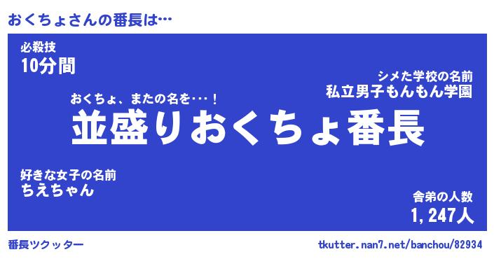 | 欧米人風あだ名 | 『マイケルおくちょ』『ウサインおくちょ』 |