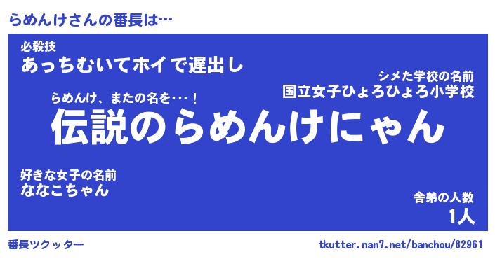 | 男性向けラノベタイトル風あだ名 | 『らめんけの憂鬱』 |
