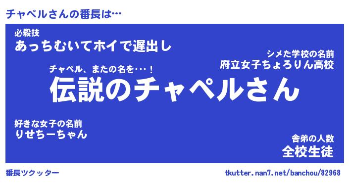 | 男性向けラノベタイトル風あだ名 | 『チャペルの憂鬱』 |