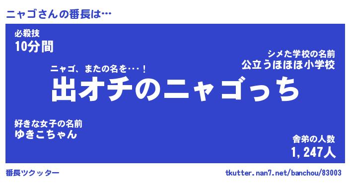 | 2回繰り返すあだ名 | 『ニャニャ』『ニニャャ』『おたおた』 |