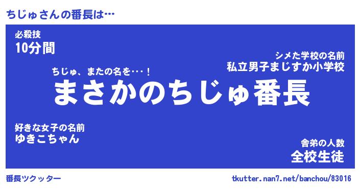 | 伝説のあだ名 | 『伝説のスナイパーちじゅ』 |