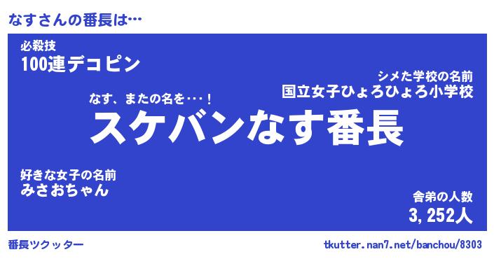| 2回繰り返すあだ名 | 『なすなす』『ななすす』『あんあん』 |