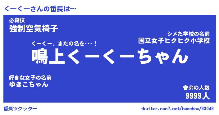 | 肩書あだ名 | 『くーくー店長』『くーくー総理大臣』 |