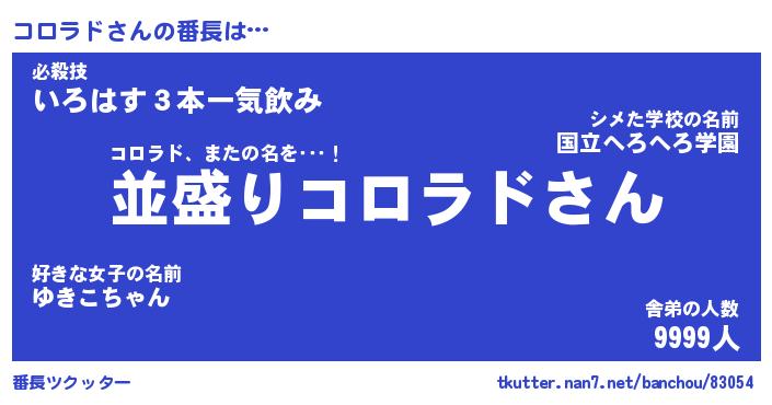 | ファンタジー風あだ名 | 『コロフェル』『エターナルコロラドー』 |