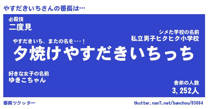 | 2回繰り返すあだ名 | 『やすやす』『ややすす』『ねちねち』 |