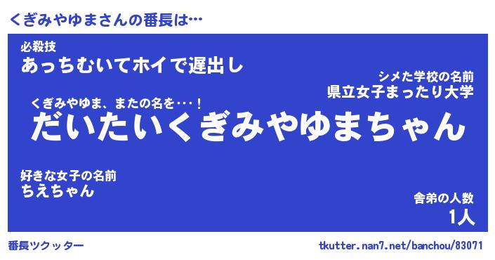 | ヒーロー風カッコイイあだ名 | 『スーパークギミヤユマ』『天弓騎士クギ』 |
