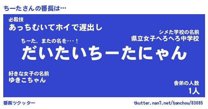 | 意味不明あだ名 | 『ペロリンちーた』『ちーたフォーエバー』 |