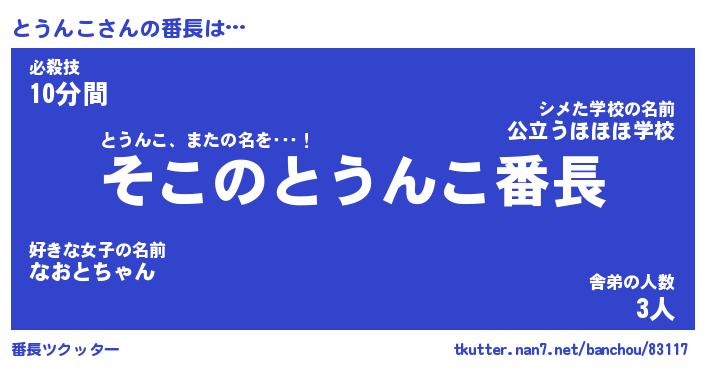 | 肩書あだ名 | 『とうんこ店長』『とうんこ国家主席』 |