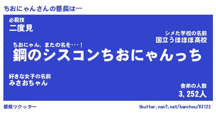 | ヘコむあだ名 | 『ちおにー』『酢こんぶ』『ちおっぺ』 |