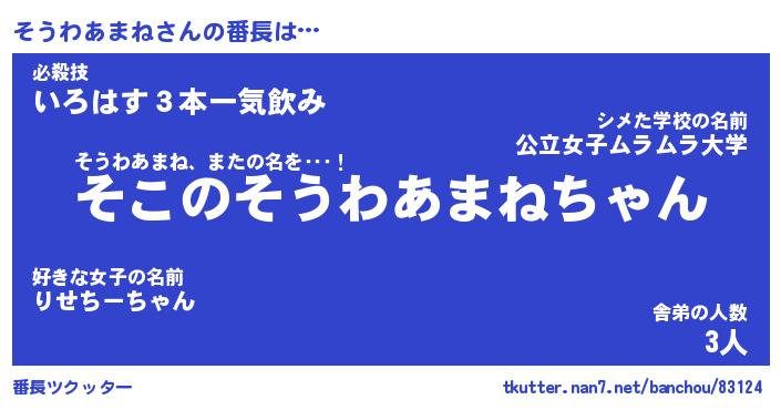 | ヘコむあだ名 | 『そうにゅー』『なまこ酢』『そうお』 |