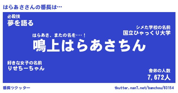 | 意味不明あだ名 | 『ペロリンはらあさ』『永久保存はらあさ』 |