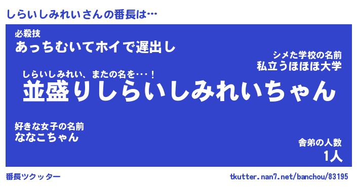 | 意味不明あだ名 | 『ペロリンしらいしみれい』 |