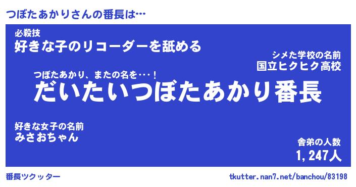 | 2回繰り返すあだ名 | 『つぼつぼ』『つつぼぼ』『ぬぷぬぷ』 |