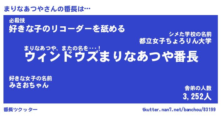| 肩書あだ名 | 『まりなあつや店長』『まりなあつや担任』 |