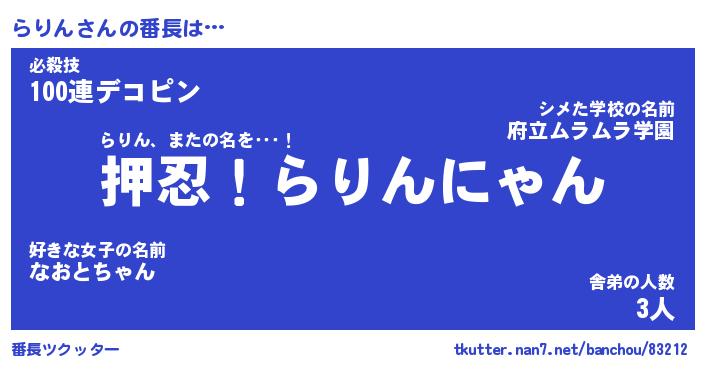 | ヒーロー風カッコイイあだ名 | 『スーパーラリン』『ウルトラらりんマン』 |