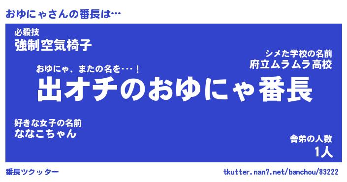 | 肩書あだ名 | 『おゆにゃ店長』『おゆにゃ総理大臣』 |