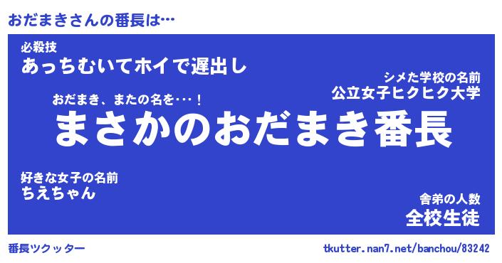 | 意味不明あだ名 | 『ペロリンおだまき』『永久保存おだまき』 |