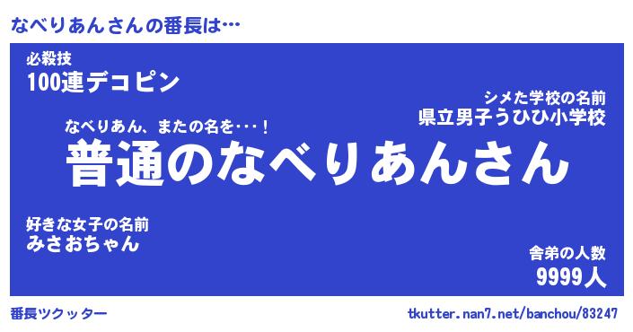 | ヒーロー風カッコイイあだ名 | 『スーパーナベリアン』『天弓騎士ナベ』 |