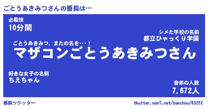 | 恥ずかしいあだ名 | 『プリティーごとうあきみつ』『ごとちん』 |
