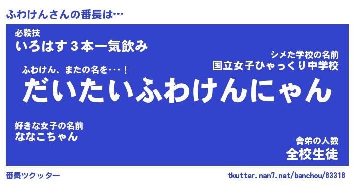 | 意味不明あだ名 | 『ペロリンふわけん』『永久保存ふわけん』 |