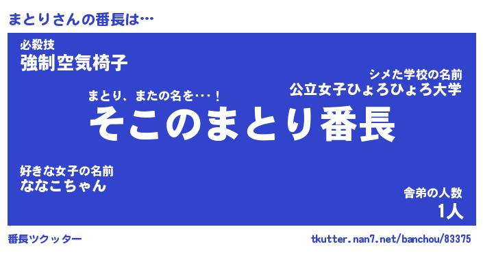 | 意味不明あだ名 | 『ペロリンまとり』『まとりフォーエバー』 |