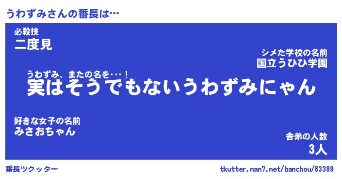 | ポケモン風あだ名 | 『ウワチュウ』『ウワズダネ』 |