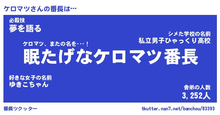 | 意味不明あだ名 | 『ペロリンケロマツ』『永久保存ケロマツ』 |