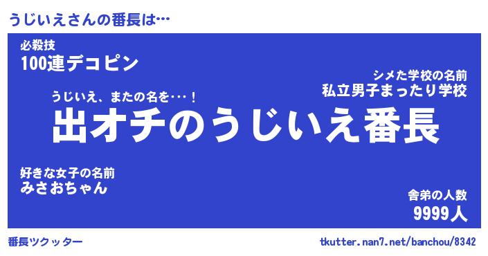| 意味不明あだ名 | 『ペロリンうじいえ』『永久保存うじいえ』 |