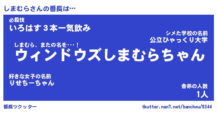 | ヘコむあだ名 | 『しまにー』『なまこ酢』『しまお』 |