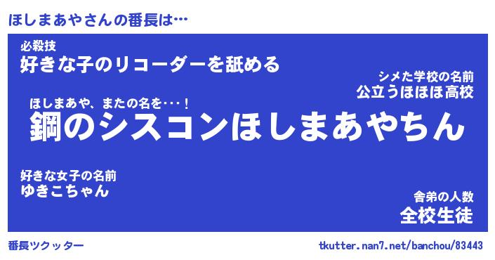 | 伝説のあだ名 | 『封印されしスナイパーほしまあや』 |