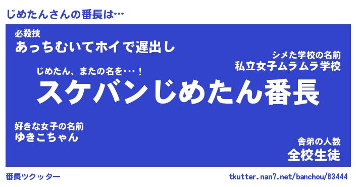 | 意味不明あだ名 | 『ペロリンじめたん』『永久保存じめたん』 |