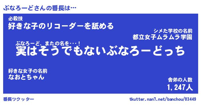 | 肩書あだ名 | 『ぶなろーどCEO』『ぶなろーど国家主席』 |