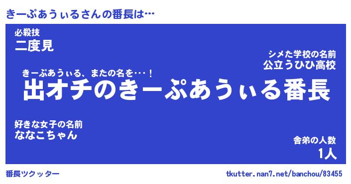 | 男性向けラノベタイトル風あだ名 | 『きーぷあうぃるの憂鬱』 |