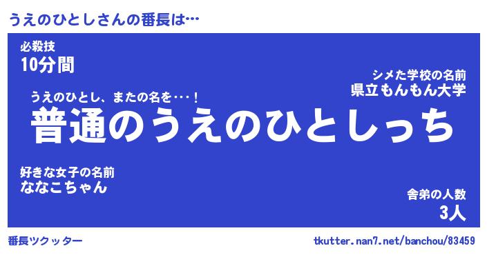 | ピコ太郎風あだ名 | 『ウコ二郎』『ピウ一郎』『ウエ十郎』 |