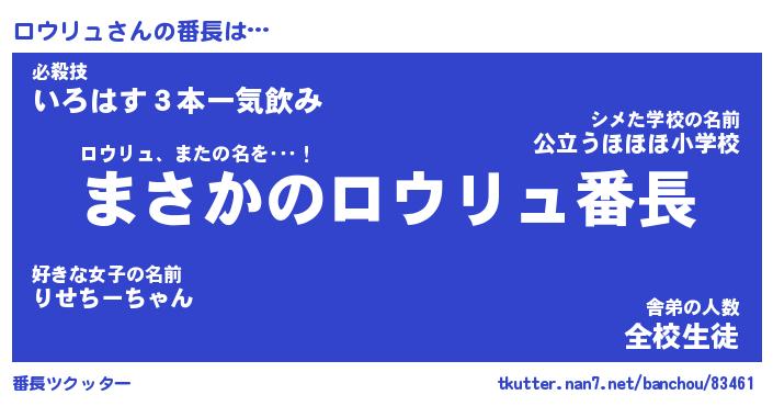 | 伝説のあだ名 | 『伝説のスナイパーロウリュ』 |