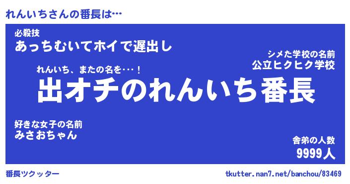 | 伝説のあだ名 | 『伝説のスナイパーれんいち』 |