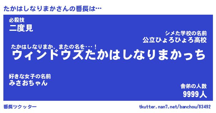 | ヒーロー風カッコイイあだ名 | 『スーパータカハシナリマカ』 |