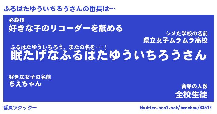 | 意味不明あだ名 | 『ペロリンふるはたゆういちろう』 |
