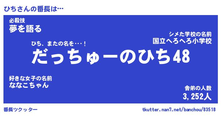 | ヘコむあだ名 | 『ひちふぇ~』『牛乳』『ひちっちょ』 |