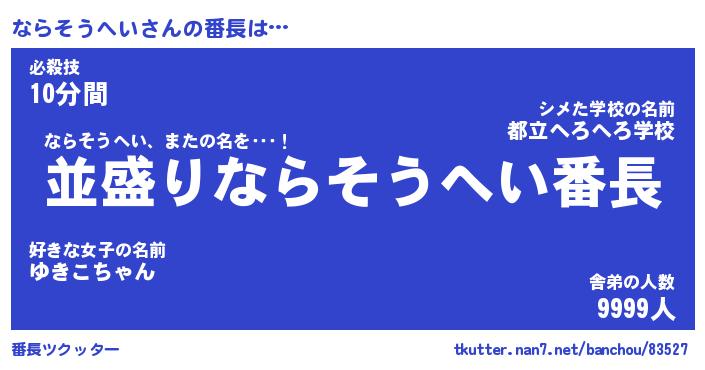 | 肩書あだ名 | 『ならそうへい御曹司』 |