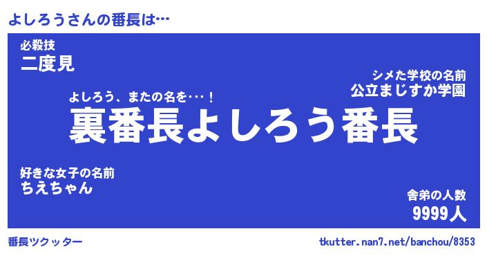 | ヒーロー風カッコイイあだ名 | 『スーパーヨシロウ』『天弓騎士ヨシ』 |